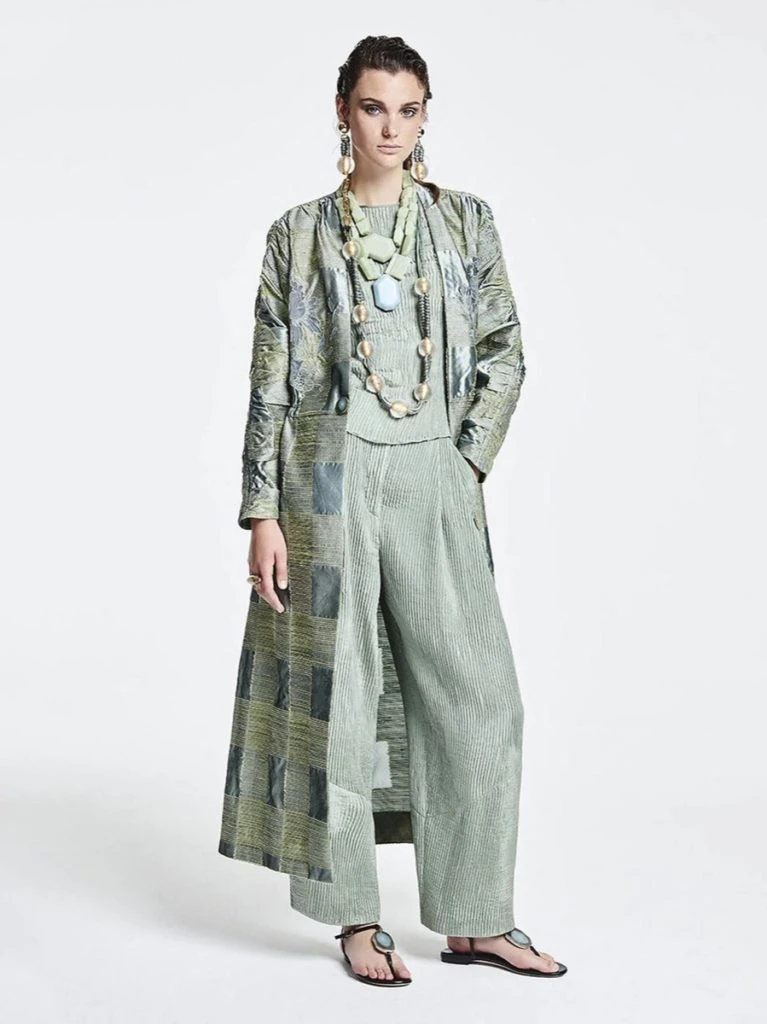 La paleta de colores va desde delicados tonos verdes, celeste pastel, azules y negros que conviven en perfecta armonía logrando una figura distinguida y súper chic.