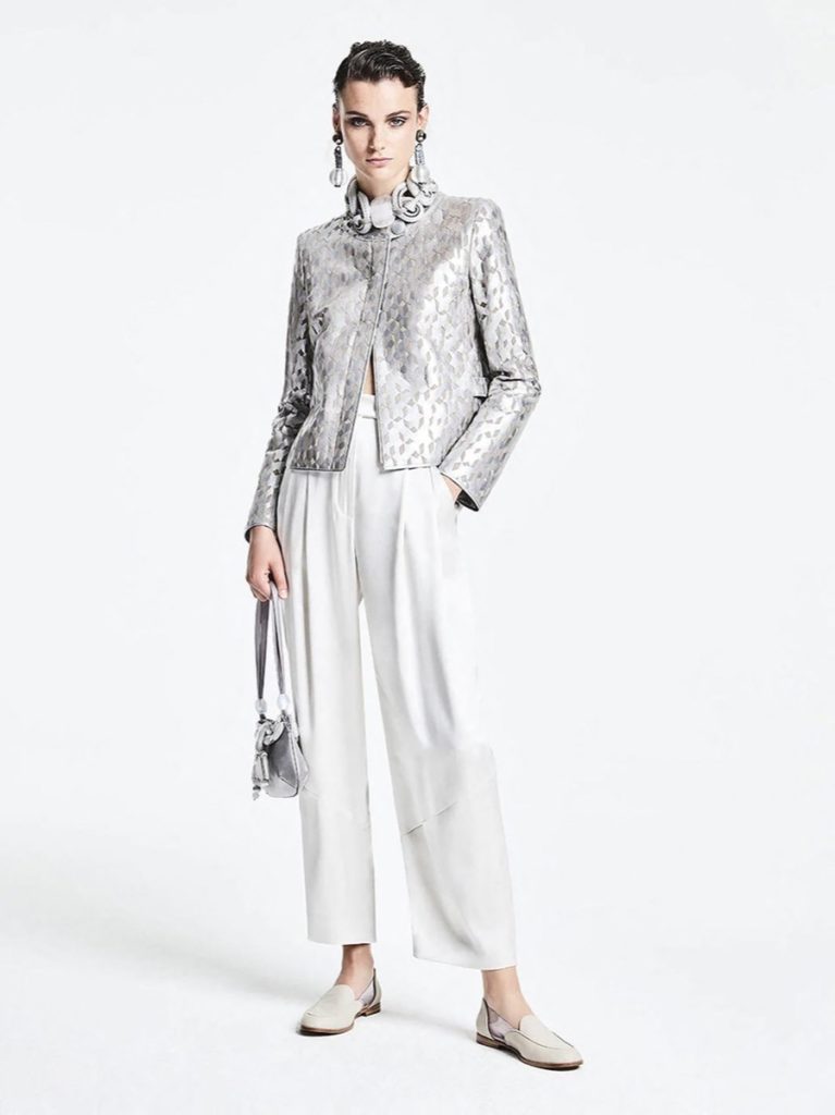 Sin olvidar su tradición italiana, creó piezas exclusivas de una exquisita delicadeza femenina donde tuvo una fuerte apuesta en prendas versátiles y atemporales.