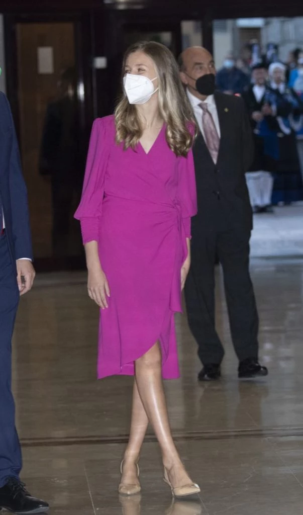 Al día siguiente, Leonor y su padre, el rey Felipe, entregaron los premios Princesa de Asturias. En esta oportunidad, la princesa llevó un vestido gris de mangas cortas con detalles de frunces, con los mismos zapatos que el día anterior.