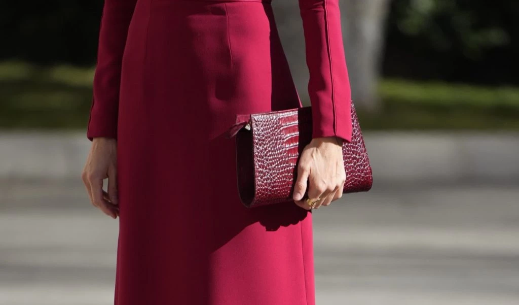 Letizia suele repetir looks, pero esta vez decidió estrenar nuevos accesorios que incorporó a su guardarropas. Se trata de un conjunto compuesto por cartera de mano tipo clutch y stilettos clásicos, ambos en piel efecto cocodrilo, todo firmado por Magri.