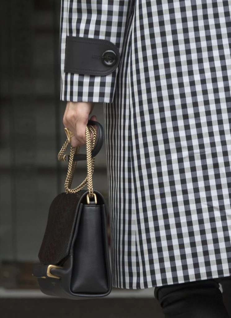 Esta vez apostó a prendas básicas del guardarropas y lo combinó con un tapado a cuadros vichy en blanco y negro en una gabardina waterproff de la etiqueta Mirto, que es todo lo que esta bien en la moda.