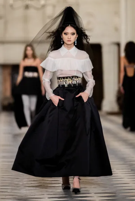 Ella lo combinó con color negro con la cartera Nina Ricci, el cinturón y los zapatos de Manolo Blahnik.