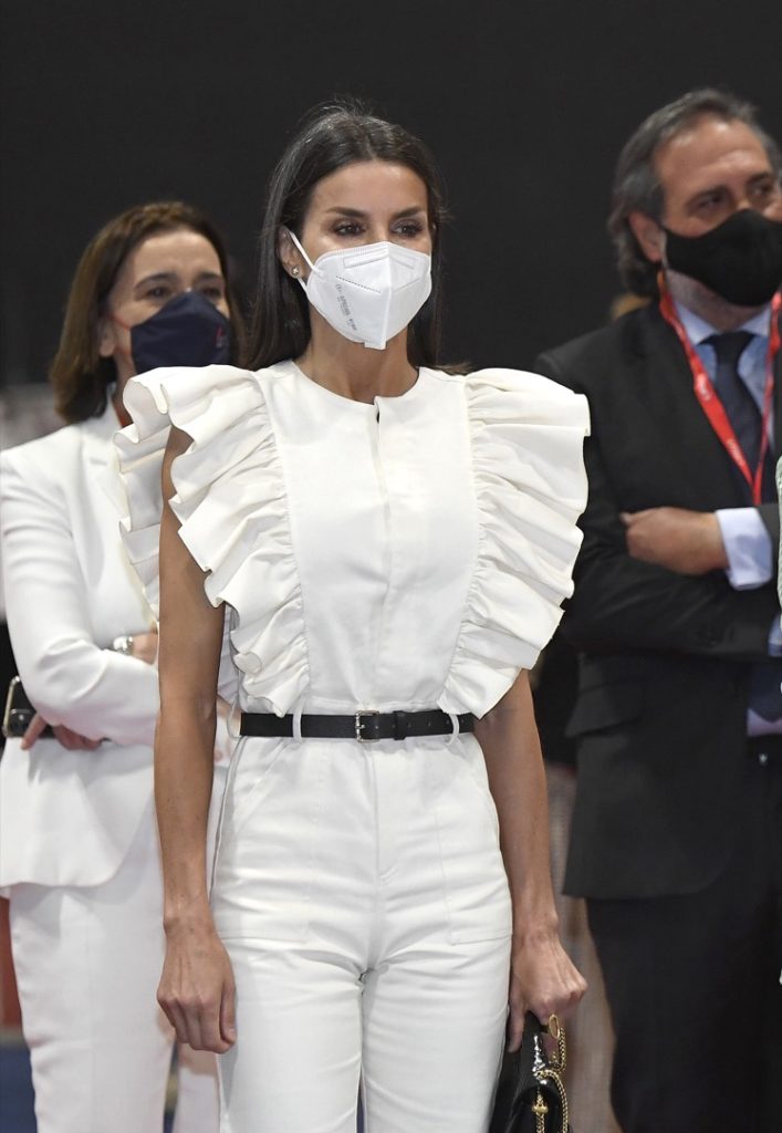 Letizia llevó un diseño de Inés Domecq, una nueva marca moda española con base en Madrid que la reina ya adoptó entre sus favoritos.