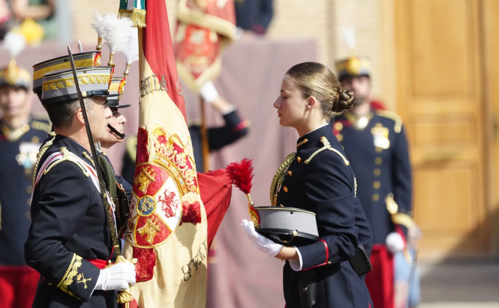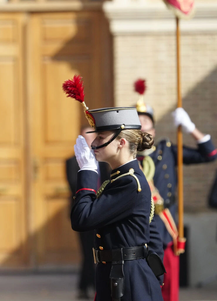 En tanto que Leonor lució el traje de cadete de la Academia Militar mientras que el rey Felipe, llevó su uniforme de capitán general del Ejercito de Tierra.