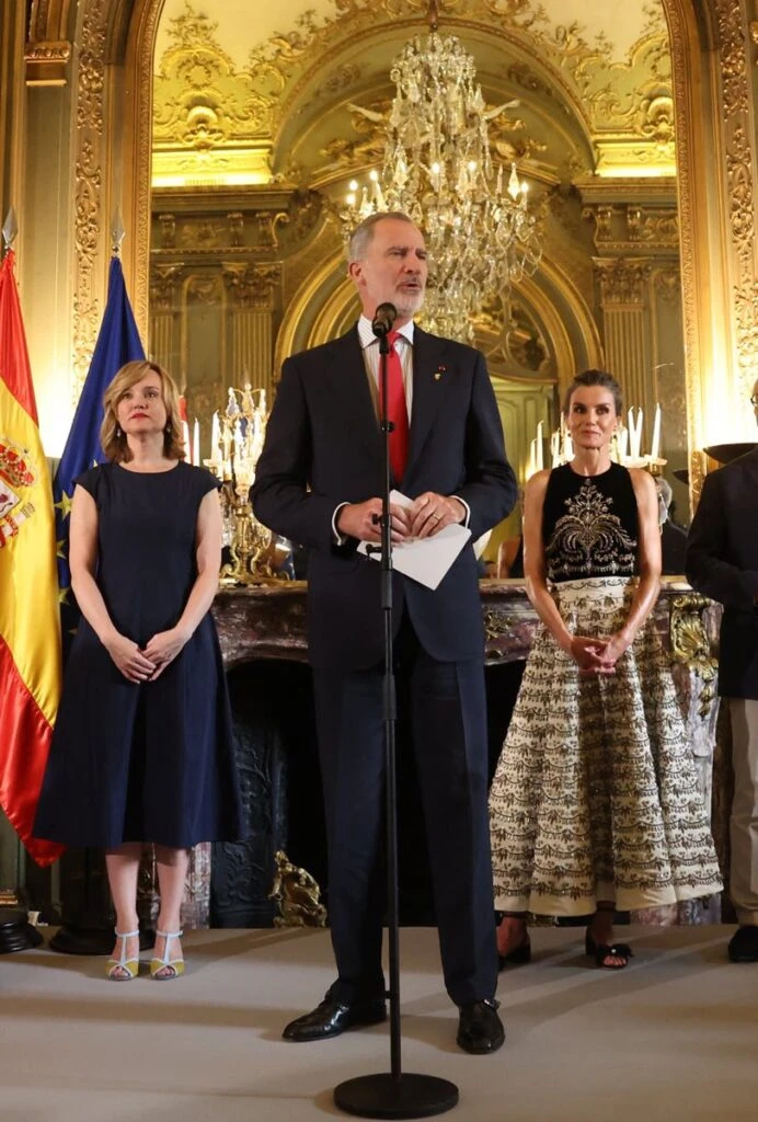 Los Reyes de España, Felipe VI y Letizia Ortiz, llegaron a París para asistir a los actos con motivo del inicio de los Juegos Olímpicos de París 2024, y allí recibieron a los miembros del Comité Olímpico Español que participarán en esta cita deportiva global. Para el primer acto antes de la ceremonia inaugural que tendrá lugar mañana viernes 26 de julio por la tarde, celebrado en la Embajada de España en la capital francesa, la royal adoptó un increíble vestido bordado de Dior.