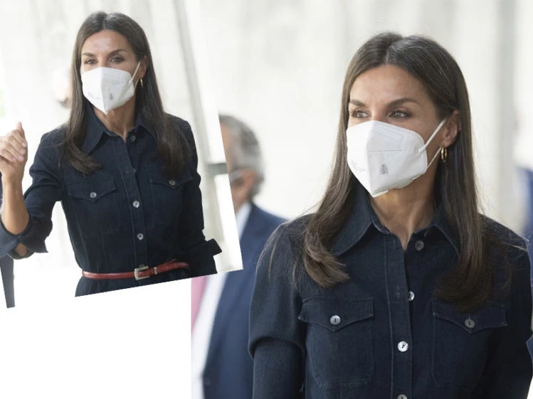 En esta ocasión, la reina de España llevó una de sus prendas de denim favoritas de su guardarropas, su amado vestido de jean de Hugo Boss. Se trata de un diseño estilo camisero, con bolsillos y puños al codo.
