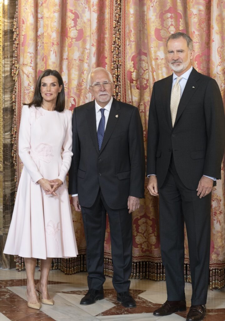 Después de presidir la ceremonia de entrega de los premios en el Paraninfo de la Universidad de Alcalá, los reyes de España Felipe VI y Letizia Ortiz homenajearon al escritor y ganador de la edición, Luis Mateo Díez, con un almuerzo en el Palacio Real de Madrid.