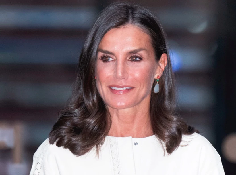 Para este acto cultural, la monarca estrenó un vestido midi tipo kimono con mangas anchas al codo y lazo para marcar su cintura. Además, el diseño tiene unas puntillas que le suman a la prenda un aire súper romántica.