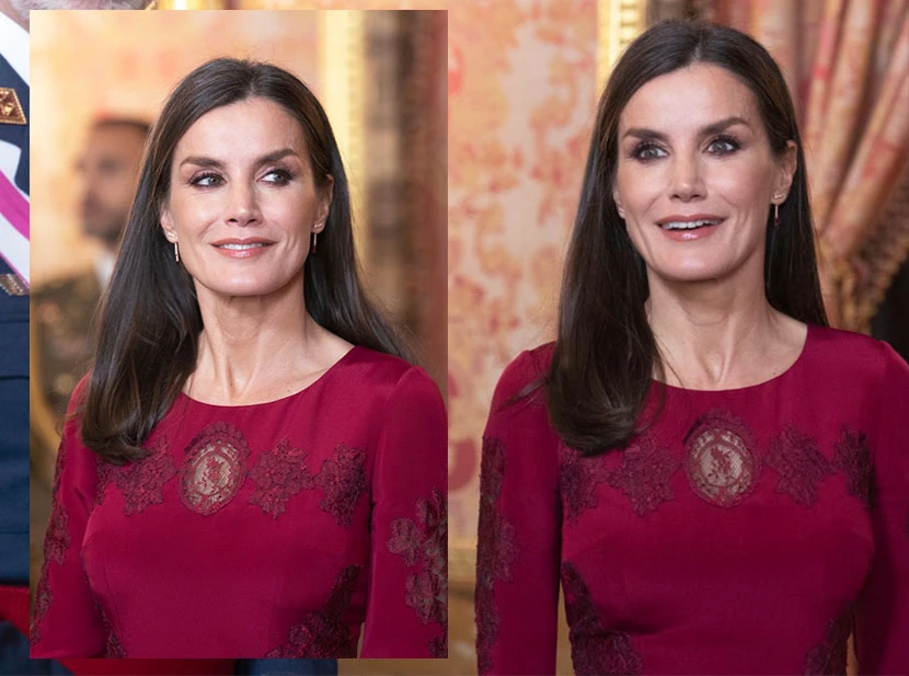 Sabemos que el rojo es el color favorito de la Reina de España y en esta ocasión recuperó de su guardarropas un vestido tubo largo al piso en tonalidad rojo marsala, del diseñador Felipe Varela.