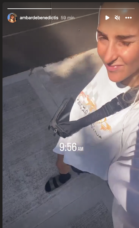Ámbar se mostró paseando por la calle con una remera oversize con estampa, ciclistas y en los pies llevó las sandalias con medias. No es la primera vez que vemos a la "it girl" adoptando esta tendencia, ya que la usa tanto para estar en su casa como para salir a la calle.