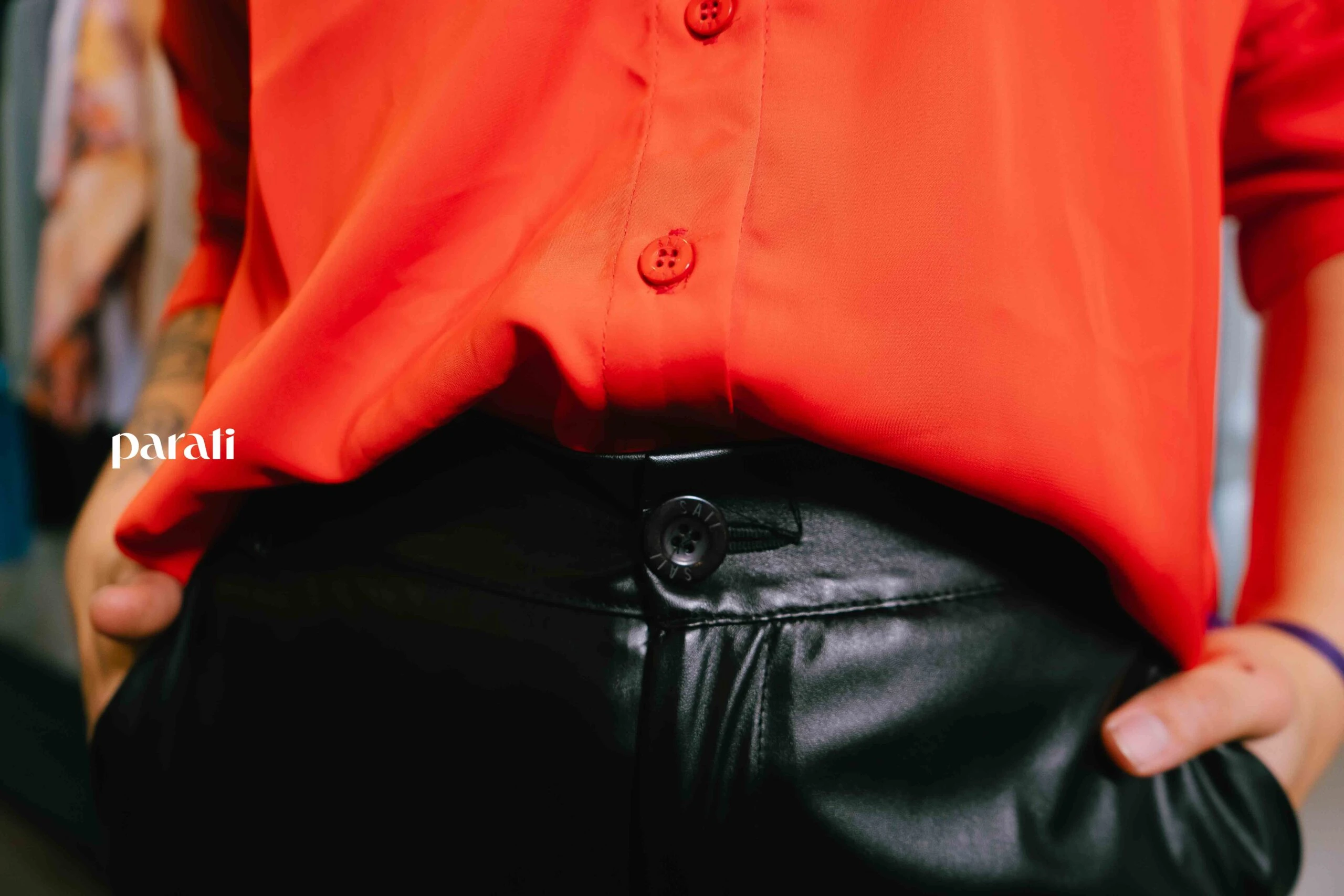 Pensando en una alternativa nocturna, combinamos una camisa crop en rojo, que es uno de los colores de esta temporada, con un pantalón tiro alto wide leg en color negro. Con el juego de texturas que se genera entre el satén y el eco cuero, se logra un look interesante y llamativo para el fin de semana. Lo mejor de estas dos prendas es su versatilidad. Por ejemplo, al combinar el wide leg de PU con una camisa blanca de algodón, tranquilamente se puede usar para ir a la oficina.