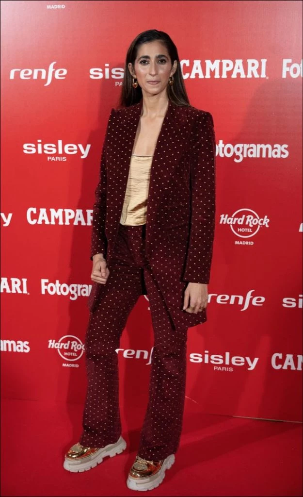 Leticia Dolera también llevó un traje de color firmado por Sandro Paris. Lo combinó con un crop top a contra tono y sandalias animal print de Guess.