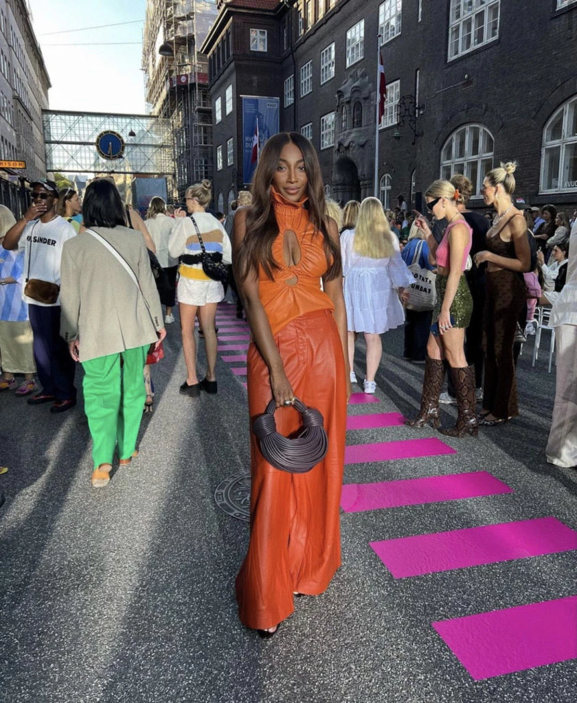 Con un top de la marca inglesa Supriya Lele, un pantalón de Joseph y cartera de Bottega Veneta, la editora de moda Georgia Medley dejó en claro que el naranja en todas sus tonalidades pisará fuerte está temporada. Un look que a pesar de no estar en el mismo tono exacto no deja de ser monocromático. El toque final lo da la cartera en tono marrón que combina a la perfección con el estilo que lleva puesto.
