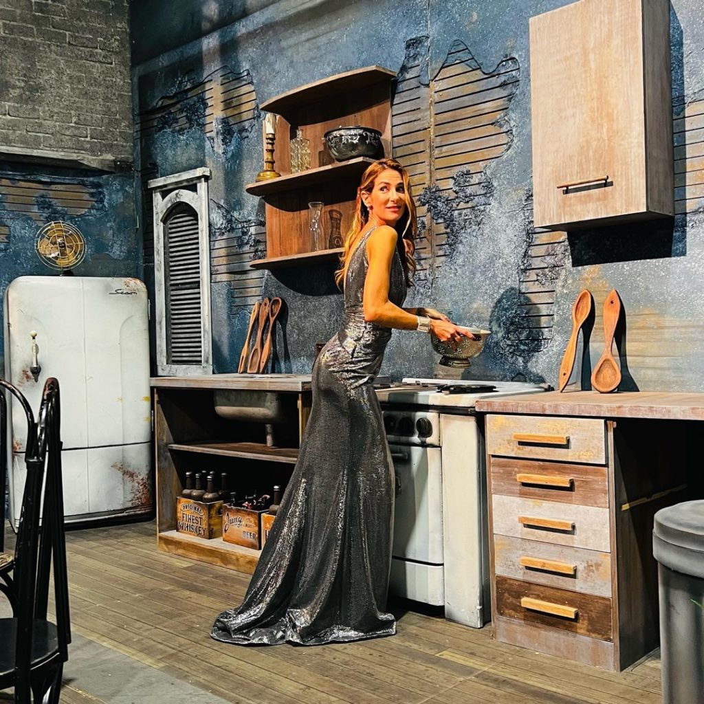 Puli de María apostó al plateado con un diseño de Gustavo Cadile con escote profundo y abertura sobre la pierna. Además lleó detalle drapeado en cintura.