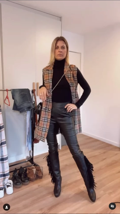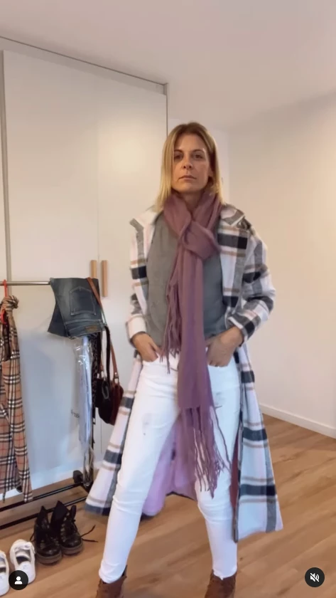 Eugenia Tobal compartió con sus seguidores un video donde brinda ideas para armar varios looks de día y de noche con básicos del placard y donde las prendas estrellas son dos tapados super cancheros, uno de ellos en formato chaleco y el otro en colores blanco y gris, ambos de estampa escocesa.