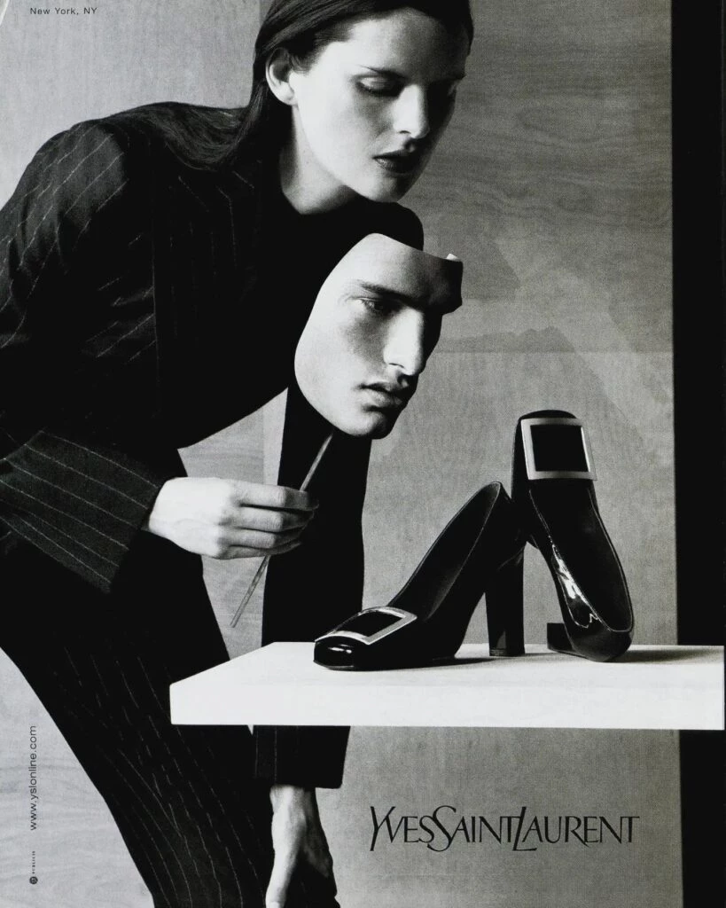 Gucci, colección primavera verano 2003 junto a Carmen Kass, fotografiados por Mario Testino