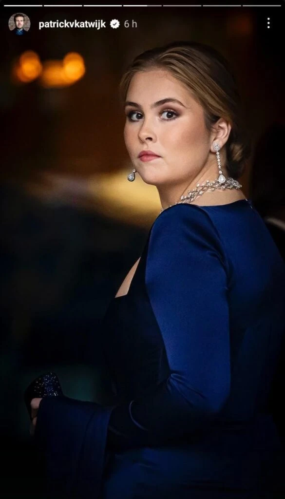 Fiel amante de la moda circular, Máxima volvió a reciclar uno de sus vestidos de gala favoritos: un diseño azul de Valentino. Esta pieza tiene ya un par de años ya que fue lucido por primera vez durante la boda de Charlene de Mónaco y Alberto II. Esto no fue lo único que decidió reutilizar ya que usó los mismos aros y collar a juego.