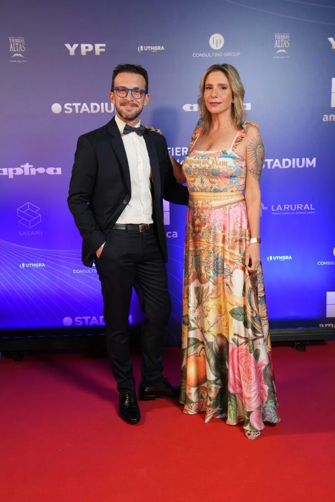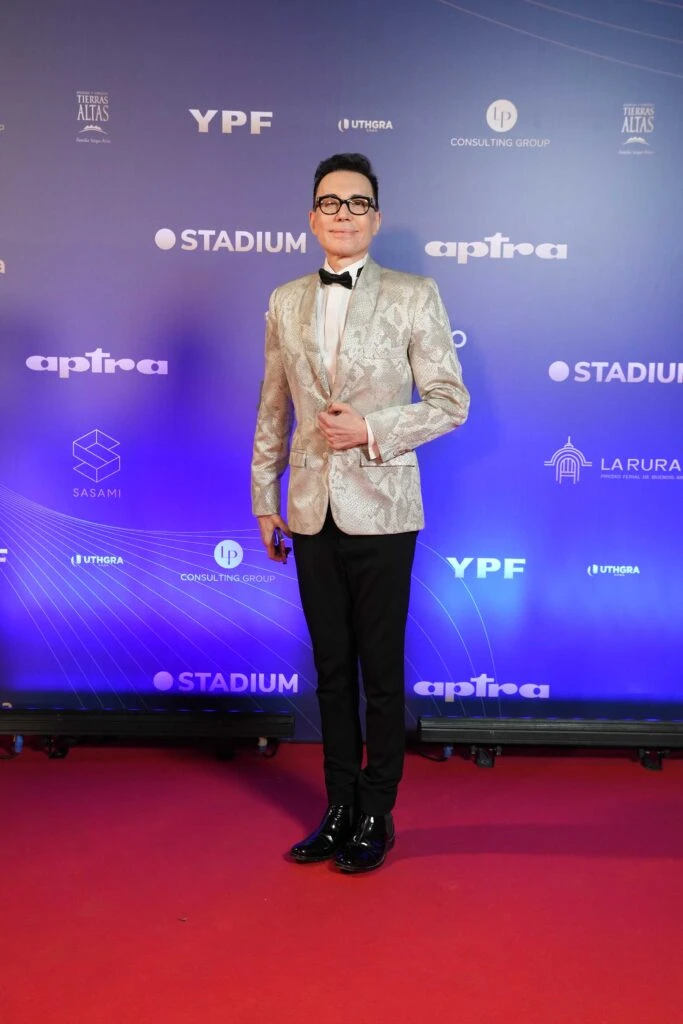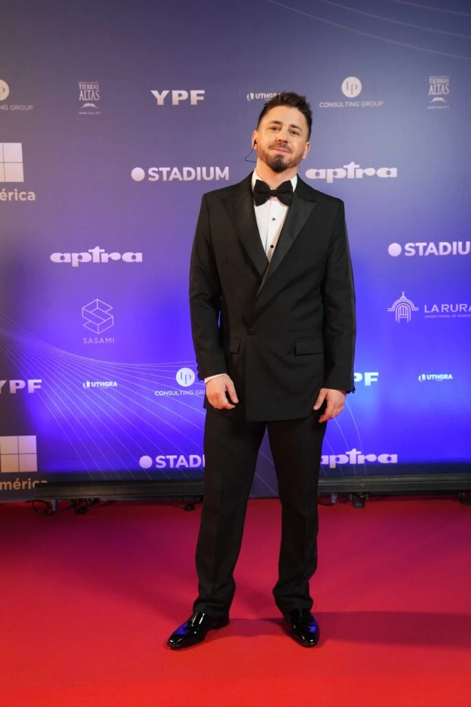 Por su lado, Guido Záffora, el presentador de la Alfombra Roja de los Martín Fierro llevó piezas exclusivas. Fueron unos gemelos de oro amarillo y ojo de tigre, un pin de oro, brillantes y brillantes amarillos, un aro de oro amarillo y brillantes, un aro cuff de oro amarillo y brillantes y un anillo Chevalier de oro amarillo y brillantes. Todo de Jean Pierre y un espectacular smoking de Atelier Pucheta.
