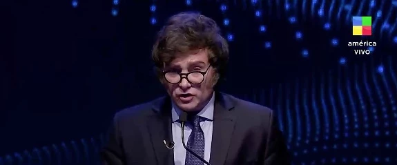 Javier Milei (La Libertad Avanza) usó un traje oscuro con una camisa celeste clara y corbata con estampado geométrico, muy formal. Incluyó sus gafas de lectura con la que no suele aparecer en público.