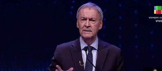Juan Schiaretti (Hacemos por Nuestro País) eligió un look muy similar al de Milei, algo clásico y formal, con una corbata con estampado de puntos.