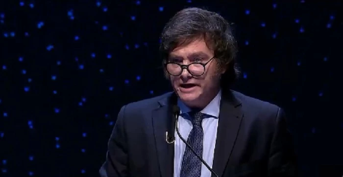 El referente libertario Javier Milei al igual que el resto de los candidatos masculinos, llevó saco negro, camisa celeste y corbata azul marina, con estampado de dibujo de círculos.