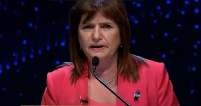 La referente de Juntos por el Cambio, Patricia Bullrich, apareció con un look muy distinto al de la primera etapa del debate: esta vez, optó por un blazer y remera rosa, llevando escarapela y el lazo negro de luto, en referencia al ataque de Hamás a Israel.