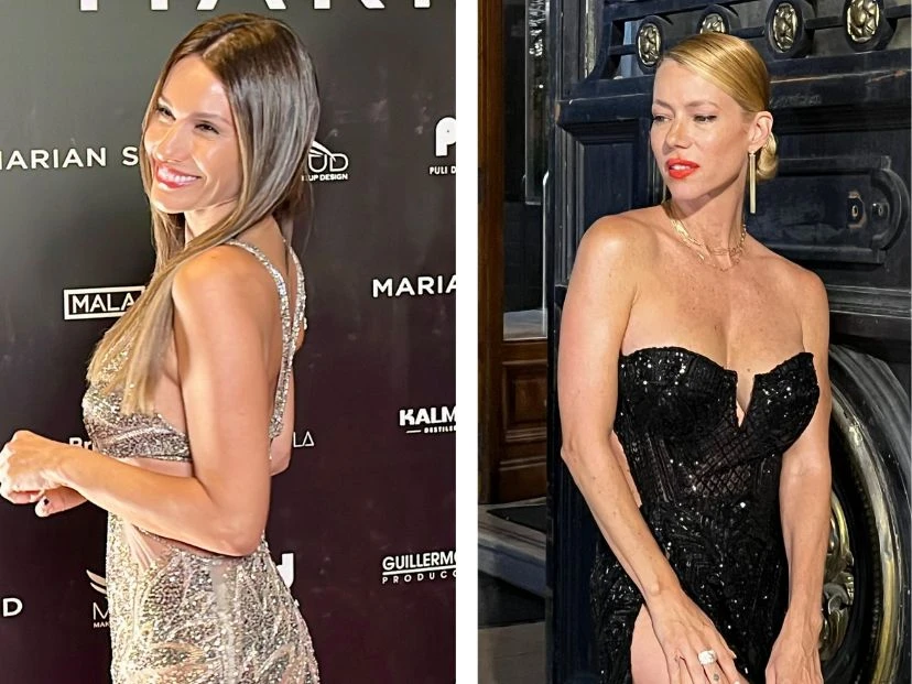Pampita, por su parte, eligió un vestido plateado también con brillos. Se trató de un diseño con transparencias y bordados en pedrería plateada, que dibujan formas orgánicas a lo largo de toda la prenda, creando un efecto de brillo y sofisticación. El diseño, de corte ajustado al cuerpo, resalta su silueta y aporta un aire glamoroso.