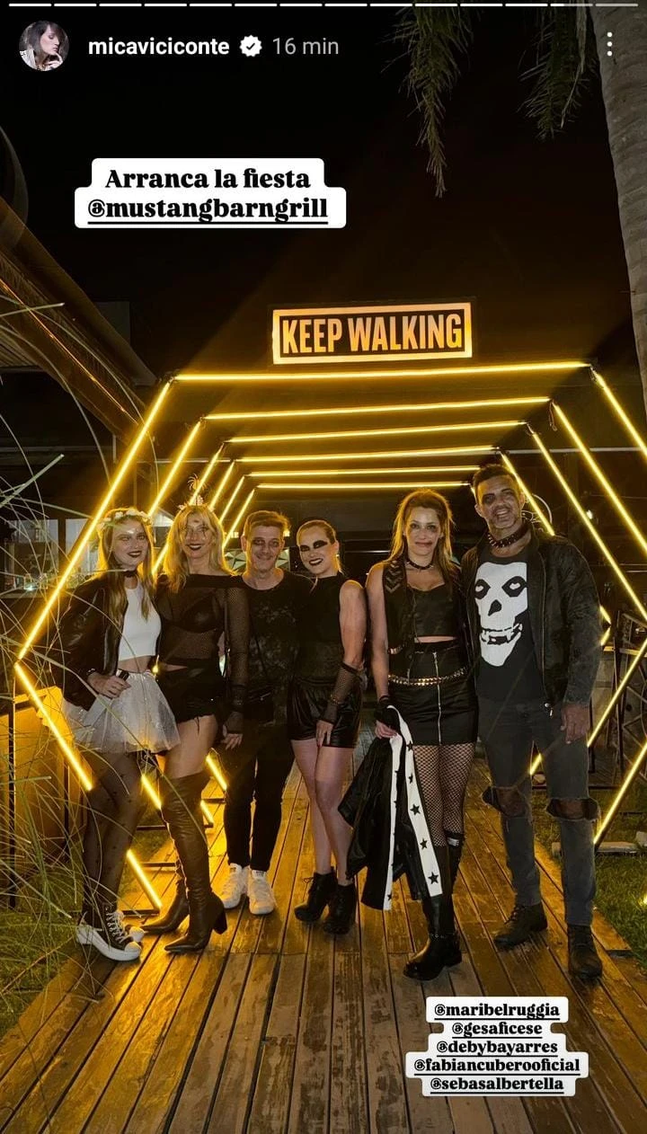 Por medio de sus stories, la pareja reveló que fue invitada a una fiesta de disfraces y que saldrían con un grupo de amigos. En las fotografías, se puede ver a Cubero con una remera metalera, pantalones de jean con roturas y campera de cuero. Además, lleva como accesorio un choker con tachas.