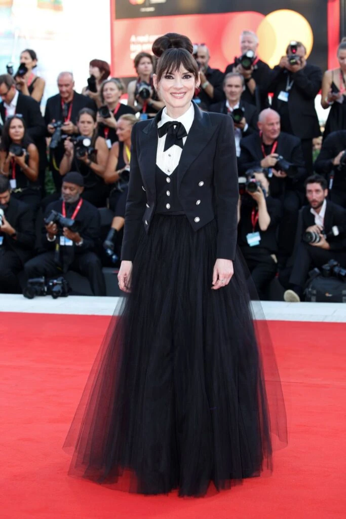 Mónica Bellucci fue otras de las que cautivó en la red carpet: la estrella italiana lució un total black al igual que Winona Ryder. En su caso, se trató de un diseño de Vivienne Westwood: un vestido con mangas abullonadas, falda ceñida a la silueta y escote en herradura. Sus accesorios fueron unas gafas y un clutch también en tonos negros.
