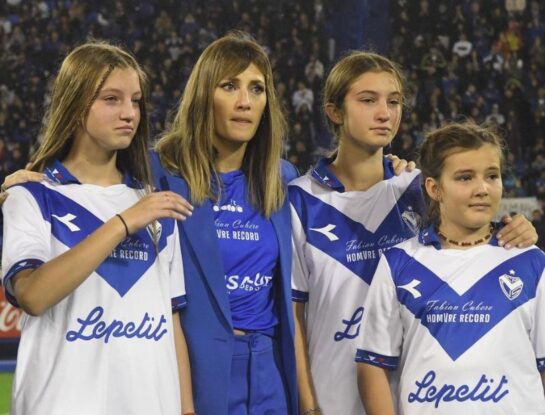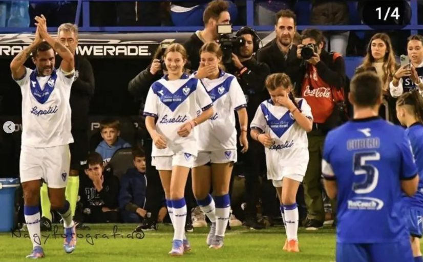 Las chicas tuvieron un rol muy activo, ya que lucieron las camisetas de Vélez con el número 5, que usaba su papá, y lookeadas con botines y shorts blancos, entraron a la cancha a jugar, tras un cálido y emotivo saludo a Fabián.