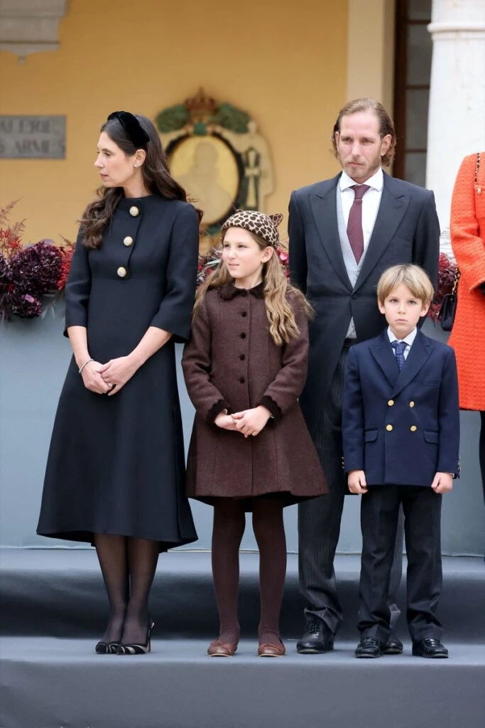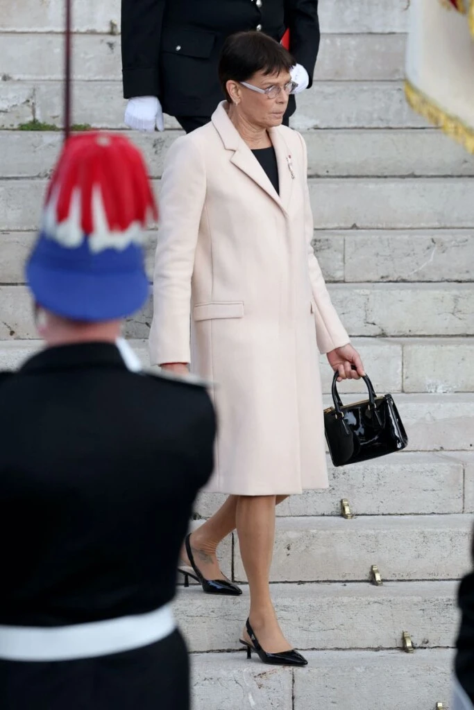 El toque final lo dieron sus gafas finas y un broche discreto, sello de la etiqueta monegasca. Un look elegante, atemporal y muy apropiado para las celebraciones oficiales del Día Nacional de Mónaco.