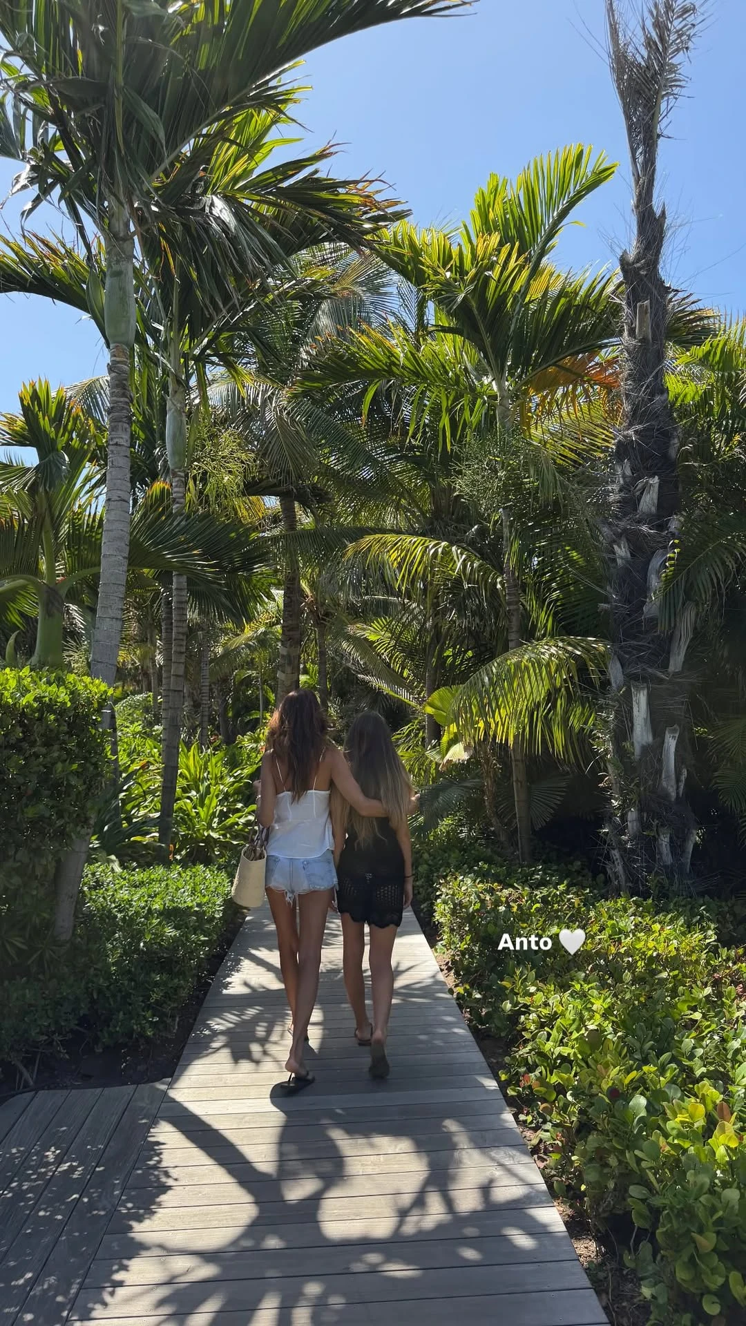 Rodeada de palmeras y de un espíritu veraniego, la empresaria textil compartió los looks elegidos para un día de playa. En las imágenes, se la puede ver con una remera blanca de tiras finitas y un minishort de jean azul con algunos detalles de roturas, una combinación fresca y cómoda para ir por arena.