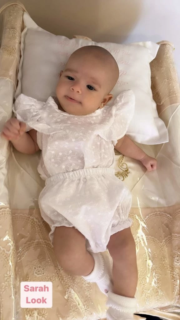 La pequeña lució una camisa de algodón blanco bordada, con volados en los hombros que aportaban volumen y un bombachudo haciendo conjunto. Además, tenía escarpines tejidos blancos con una mini rosa bordada, que se sacó en el medio del vuelo. Madre e hija coordinaron atuendos total white para llegar a Punta del Este y aprovechar de sus primeras vacaciones en familia.