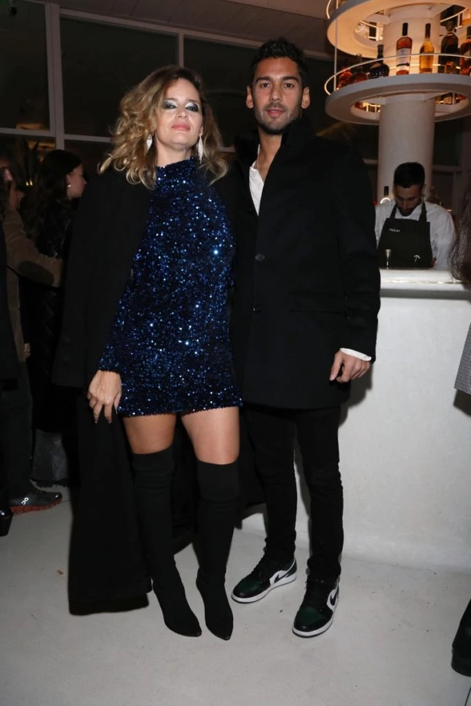 Romina Ricci fue una de las más audaces de la noche. Adoptó un mini vestido de lentejuelas en color azul y lo combinó con unas bucaneras de color negro. Como abrigo llevó un maxi tapado negro, un comodín indiscutible del guardarropas.