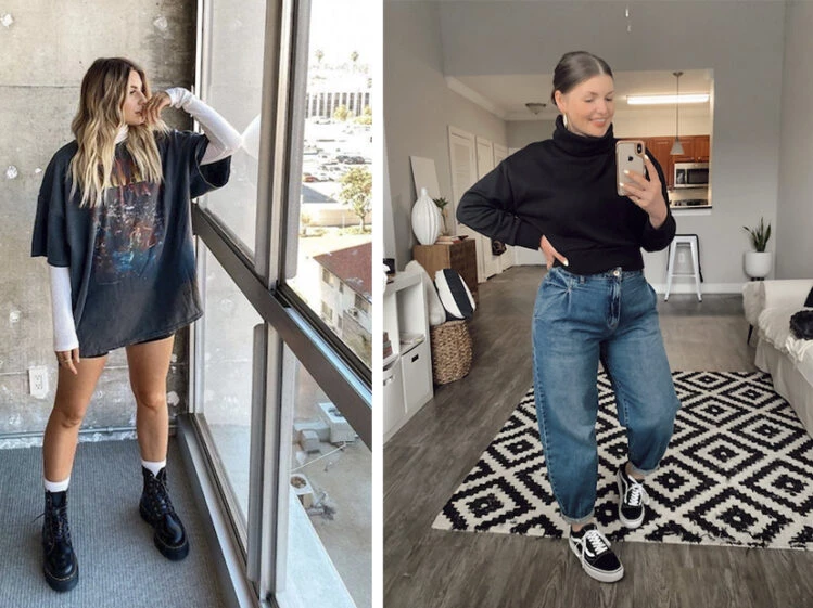 Con tus jeans con roturas, remera y camisa escocesa, tenés un look grunge, ese que tanto se usaba en los `90. O podés adoptar un look más "ramonero", con prendas dentro del negro, como remera y un jean mom, sumando tus zapatillas de lona.