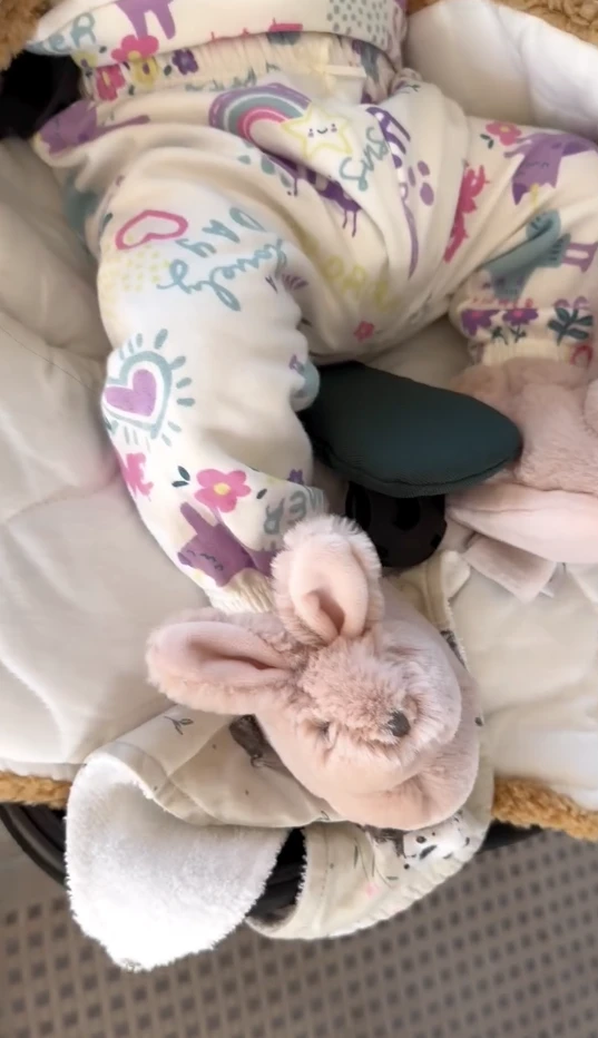 Se trata de unas pantuflas con forma de conejito, en tono rosa pastel, ideales para los días frescos. Suaves, divertidas y originales, combinan lo lúdico con lo funcional, y son perfectas para bebés que están empezando a explorar el mundo.