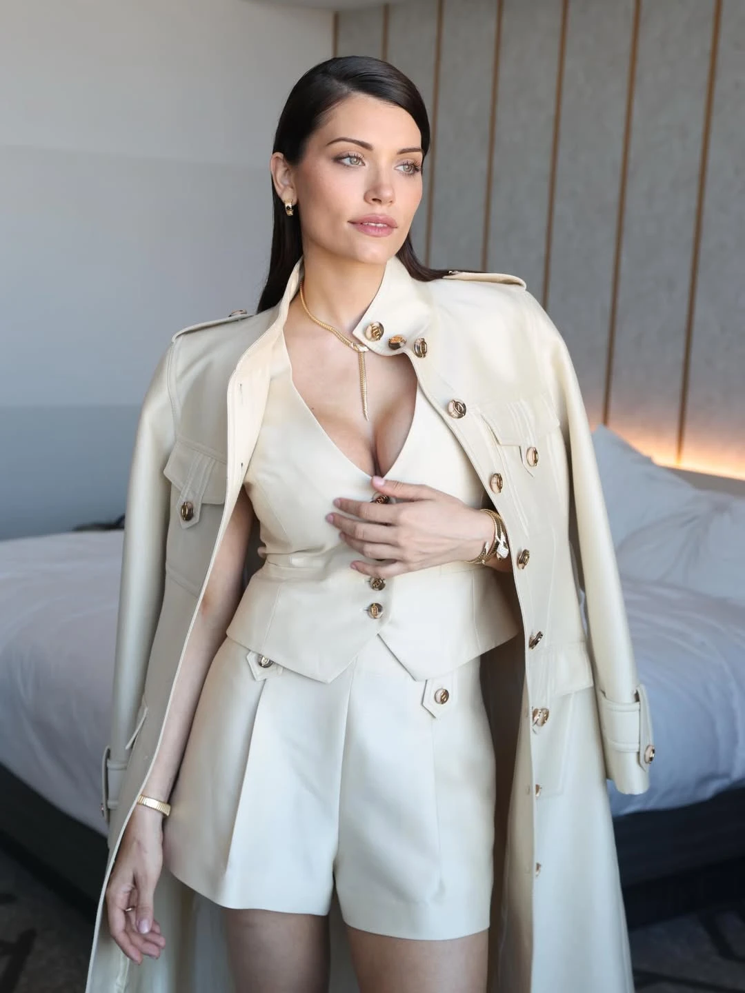 En medio de esta noticia, la actriz participó del lanzamiento del film Balls Up que muy pronto se verá por Amazon Prime. Para este estreno, la argentina lució un conjunto sastrero en color crema firmado por la marca Zimmermann, perteneciente a la colección Primavera 2026. Está compuesto por un chaleco con escote de pico pronunciado, bolsillos falsos y botones delanteros.