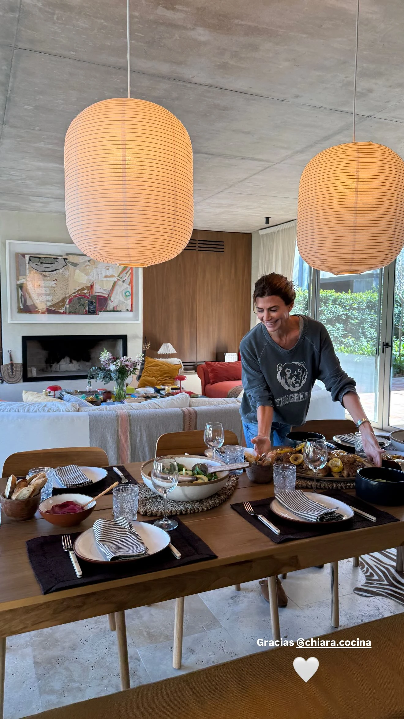 En una de las imágenes, se puede apreciar a Awada con un buzo gris estampado y un pantalón de jean, acomodando la mesa para el almuerzo. Además, se la puede ver usando su calzado favorito: unos zuecos forrados en cuero engamusado, con interior de piel tipo corderito, que ya había utilizado en una ocasión.