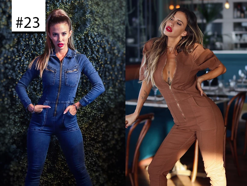 Para esta temporada, Denimwest hizo del mono segunda piel como uno de sus diseños fetiches proponiendolo como protagonista. El catsuit de jean se vuelve una monoprenda con autonomía propia que aporta altas dosis de audacia y sensualidad.