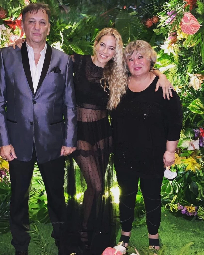 Divina y muy sensual, la actriz argentina eligió un vestido largo de tul negro con motas que dejaban ver su silueta, por debajo llevó un dos piezas de top y culotte al tono. Por su parte, el cantante también vestido todo de negro, eligió una camisa, unos pantalones chupines de vestir y unos abotinados de charol.