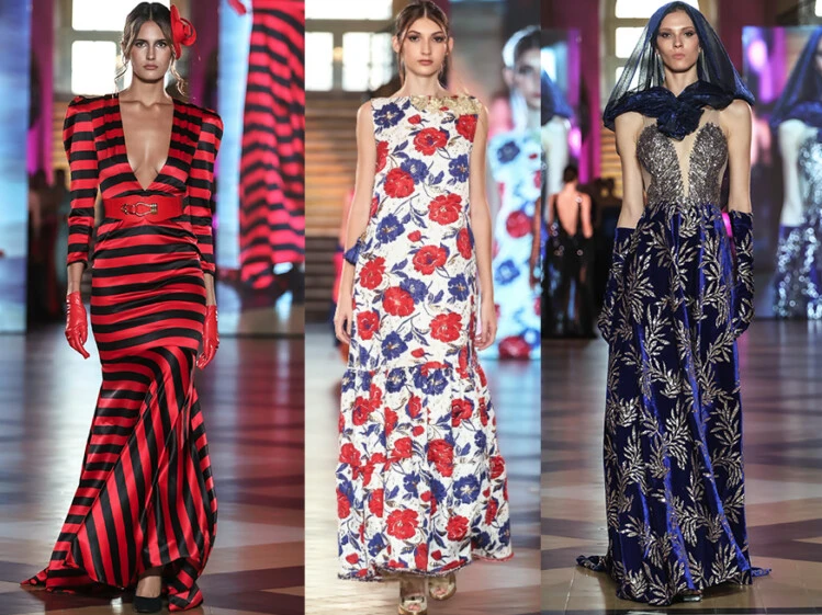 Las siluetas se vuelven etéreas y sofisticadas gracias a materiales como el tul bordado, la seda, el satén y el terciopelo. Cada textura suma una capa de sentido, mientras los bordados en pedrería capturan la luz y generan un efecto casi hipnótico.
