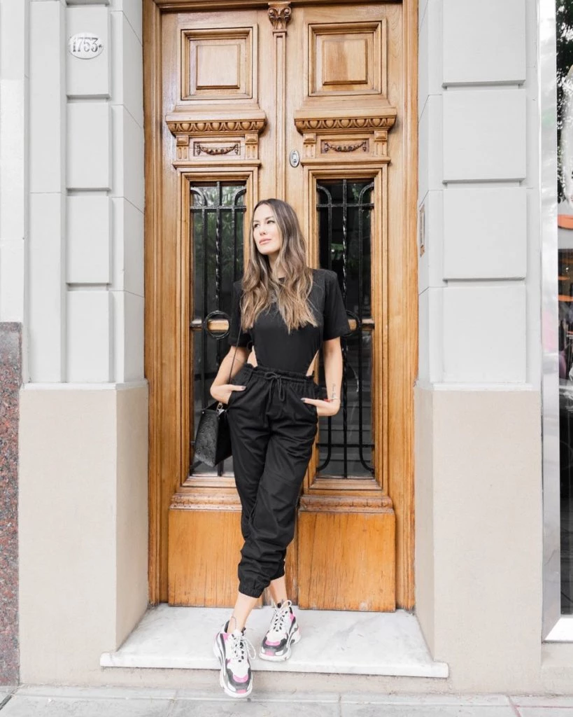 Completó con zapatillas y logró un look athleisure súper canchero.