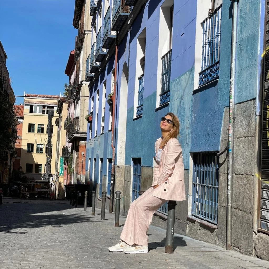 La actriz uruguaya se animó a llevar el clásico tándem de saco y pantalón de color turquesa con una remera básica y zapatillas blancas. Este es un uniforme de oficina perfecto, adoptalo sin miedo.