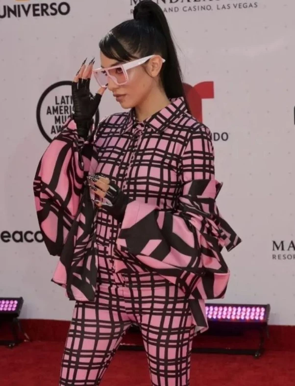 Mientras tanto, "La Nena de Argentina" quien también dijo presente en los Latin Grammy, volvió a cautivar a todos: esta vez, con un total look de camisa con legging en rosa a cuadros, mitones de cuero negro, y borceguíes altos. Por supuesto, no faltaron los lentes color rosa, accesorio que es uno de los preferidos de la intérprete.
