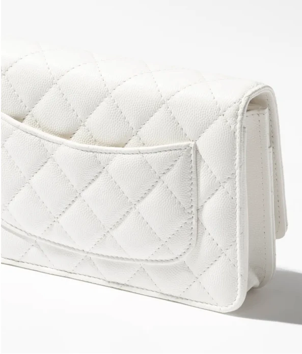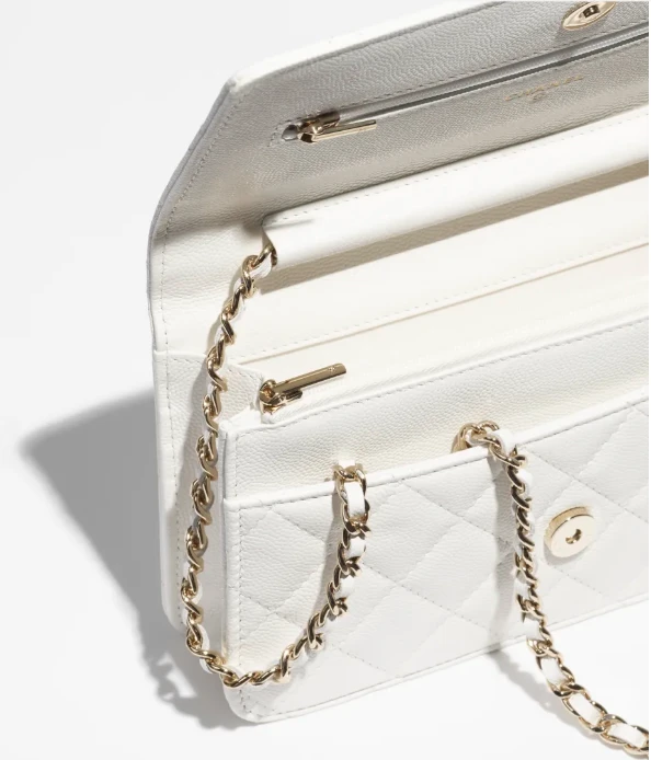 Sin dudas, la pieza principal de su outfit fue una cartera Chanel de color blanca que presentaba un diseño en cuero matelaseado, solapa y cadenas doradas.