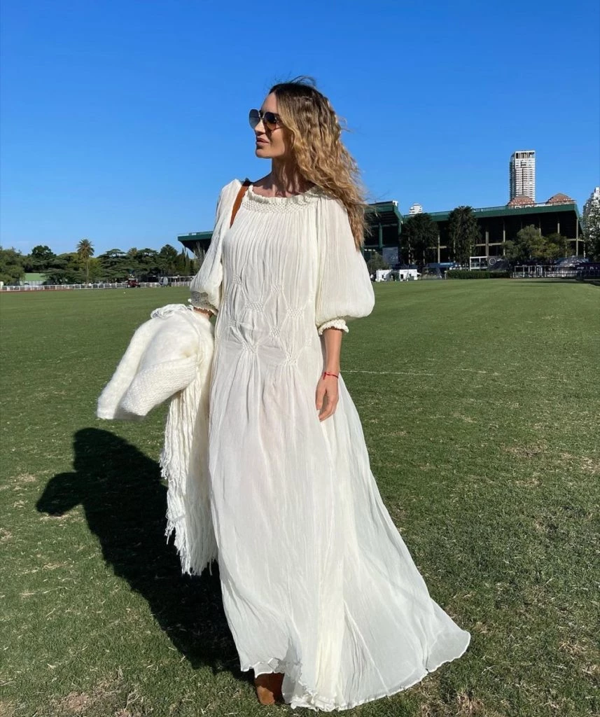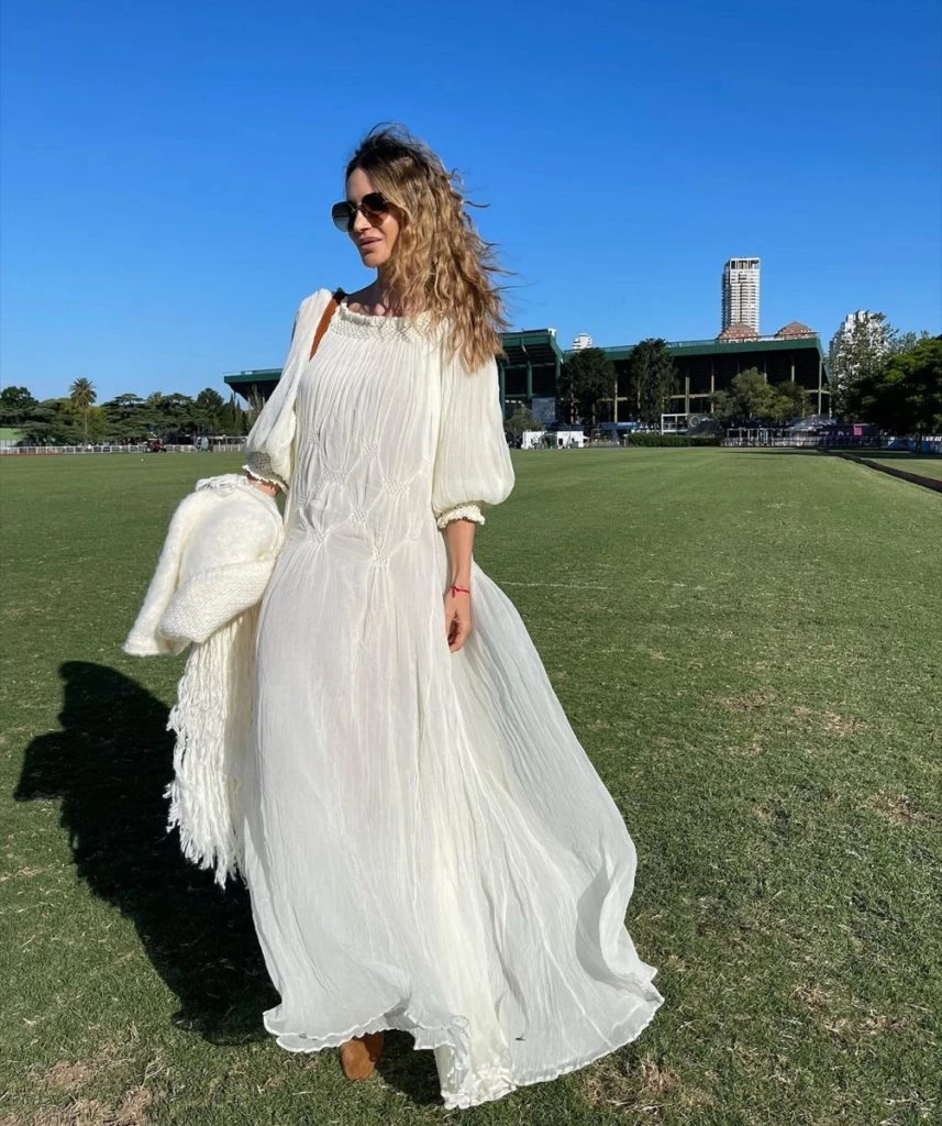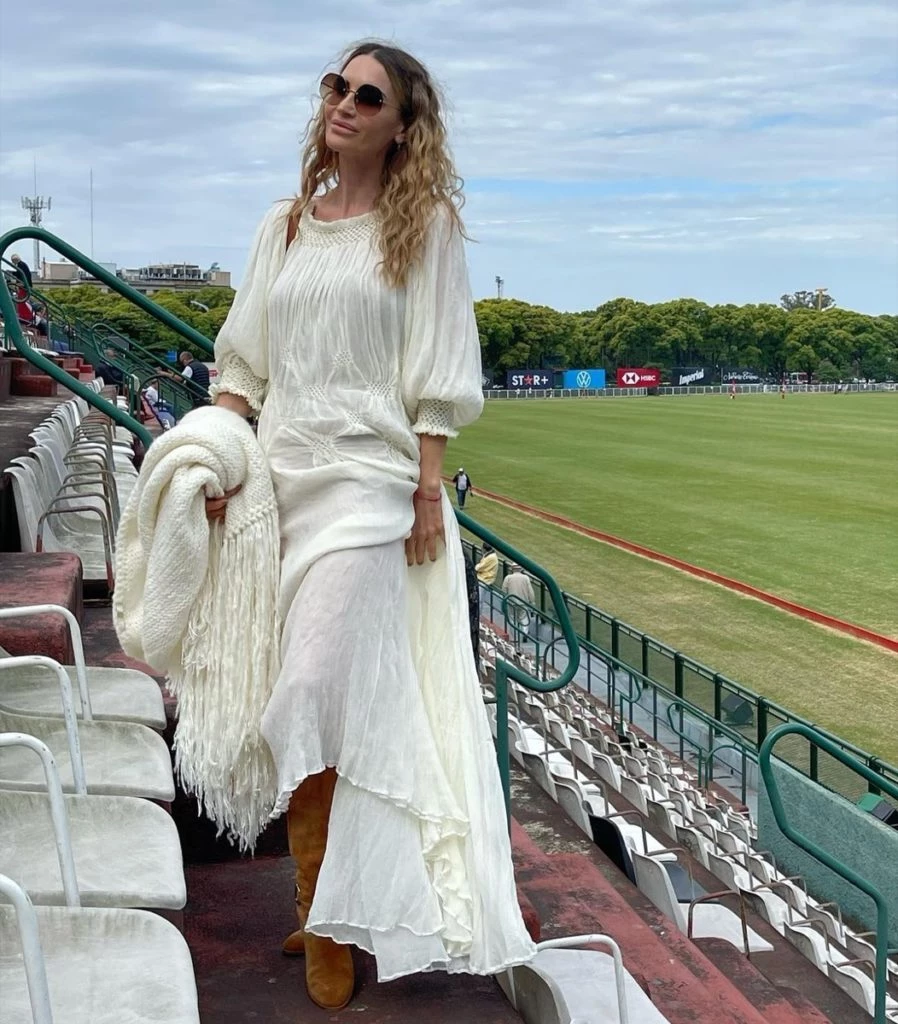 En el marco del 128º Campeonato Abierto Argentino de Polo, María acompañó a su marido Adolfo Cambiaso y se lookeó con un espectacular look off white.