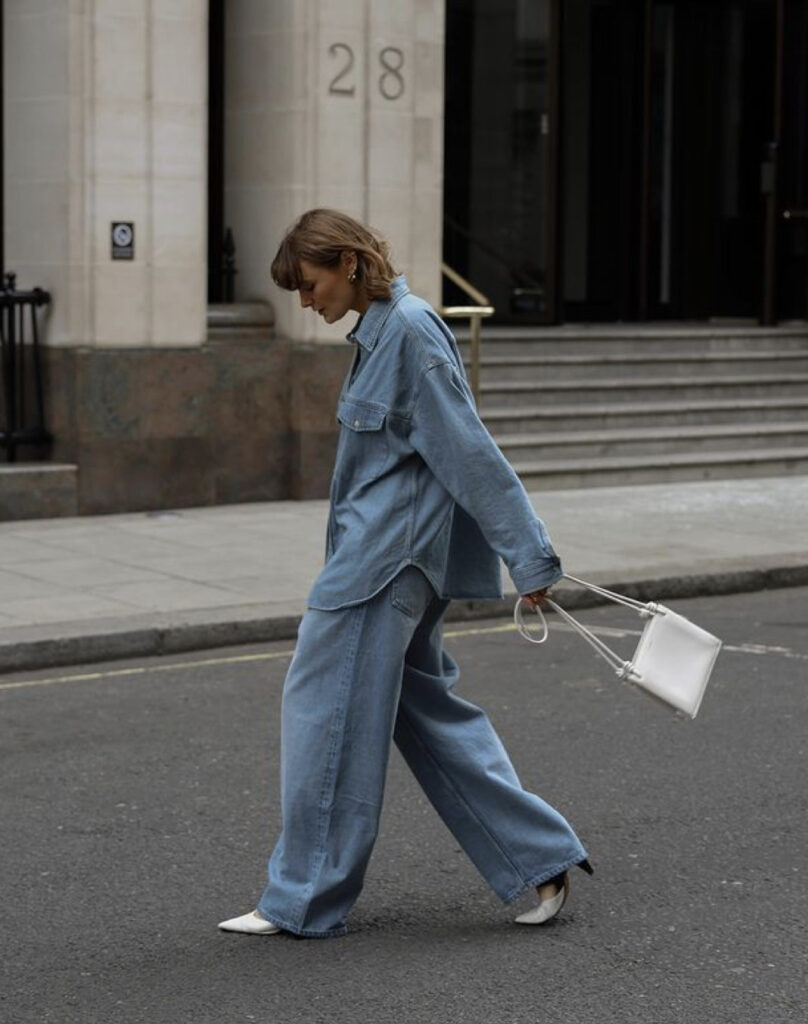 El denim sobre denim es una de las apuestas más seguras y que además, es tendencia. Un estilo que llega de la mano del Y2K, sobre todo en silueta oversize tal como podemos observar en la foto.