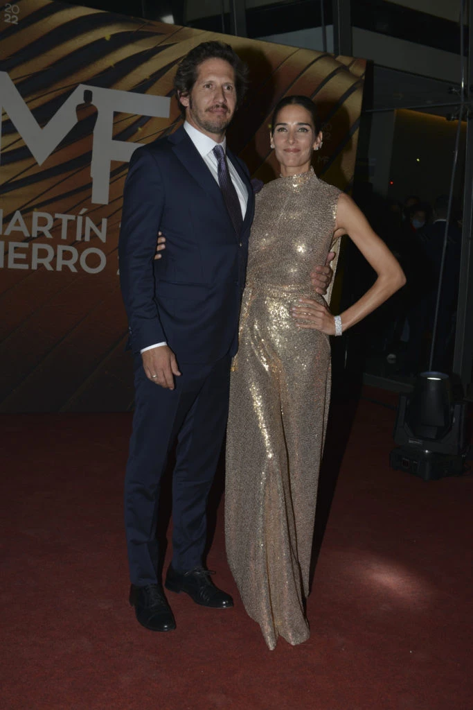 Divino el look lamé de Juana Viale. Vestida por Gino Bogani, el diseño era pegado al cuerpo, con la falda más suelta. Llevó capa y espalda al descubierto. Completó el look con joyas de Jean Pierre.