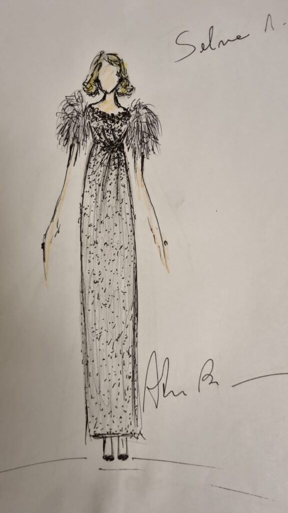 Matilda Blanco también se lookeó con un diseño de Adrian Brown. Llevó un vestido en tul color nude bordado con motos de pailletes nacarados.