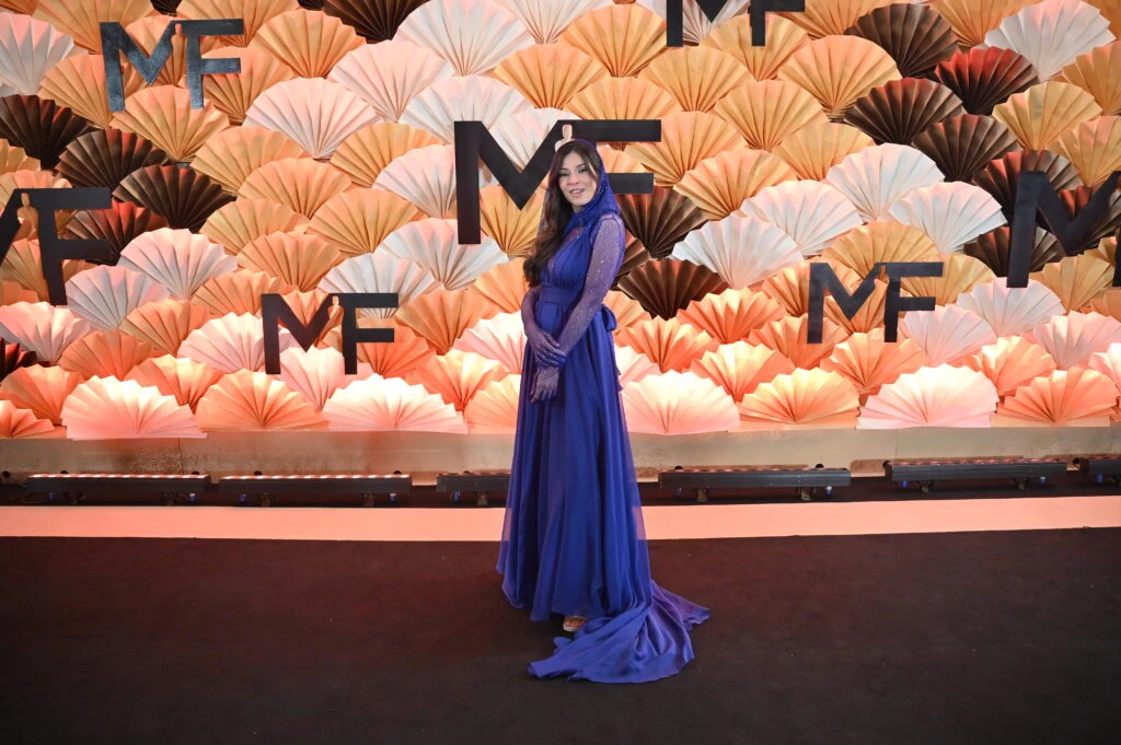 Natalia Oreiro, figura con especial participación en la ceremonia, llegó a la alfombra roja con un diseño de la firma Gorof. Lució un imponente vestido Carmine Red en tul francés con un sutil destello de cristales, destacando una teatral quilla y la espalda al descubierto.